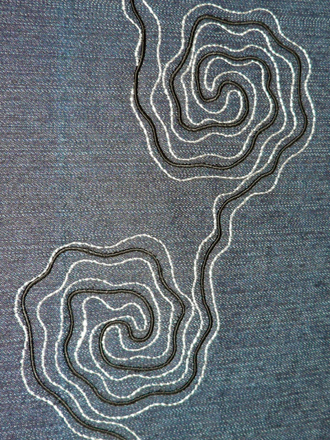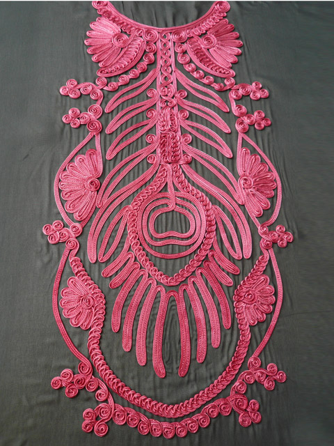盘带绣+锯齿绣